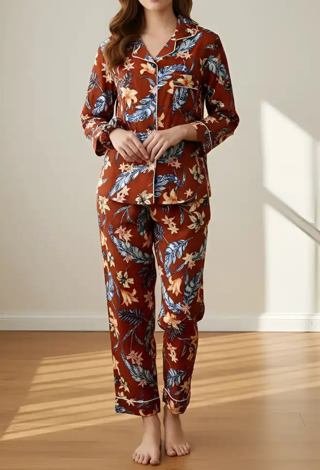 BROWN PRINTED PJ SET